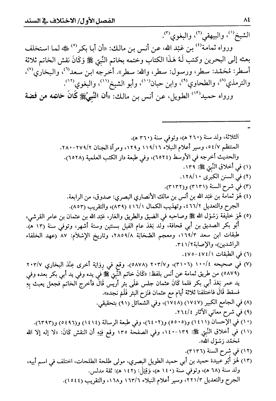 (¬11) في أخلاق النَّبِيّ - صلى الله عليه وسلم -: 139 - 140، وفي الصفحة 135 وقع فِيْهِ أن النقش كَانَ: ((لا إله إلا الله مُحَمَّد رَسُوْل الله)).