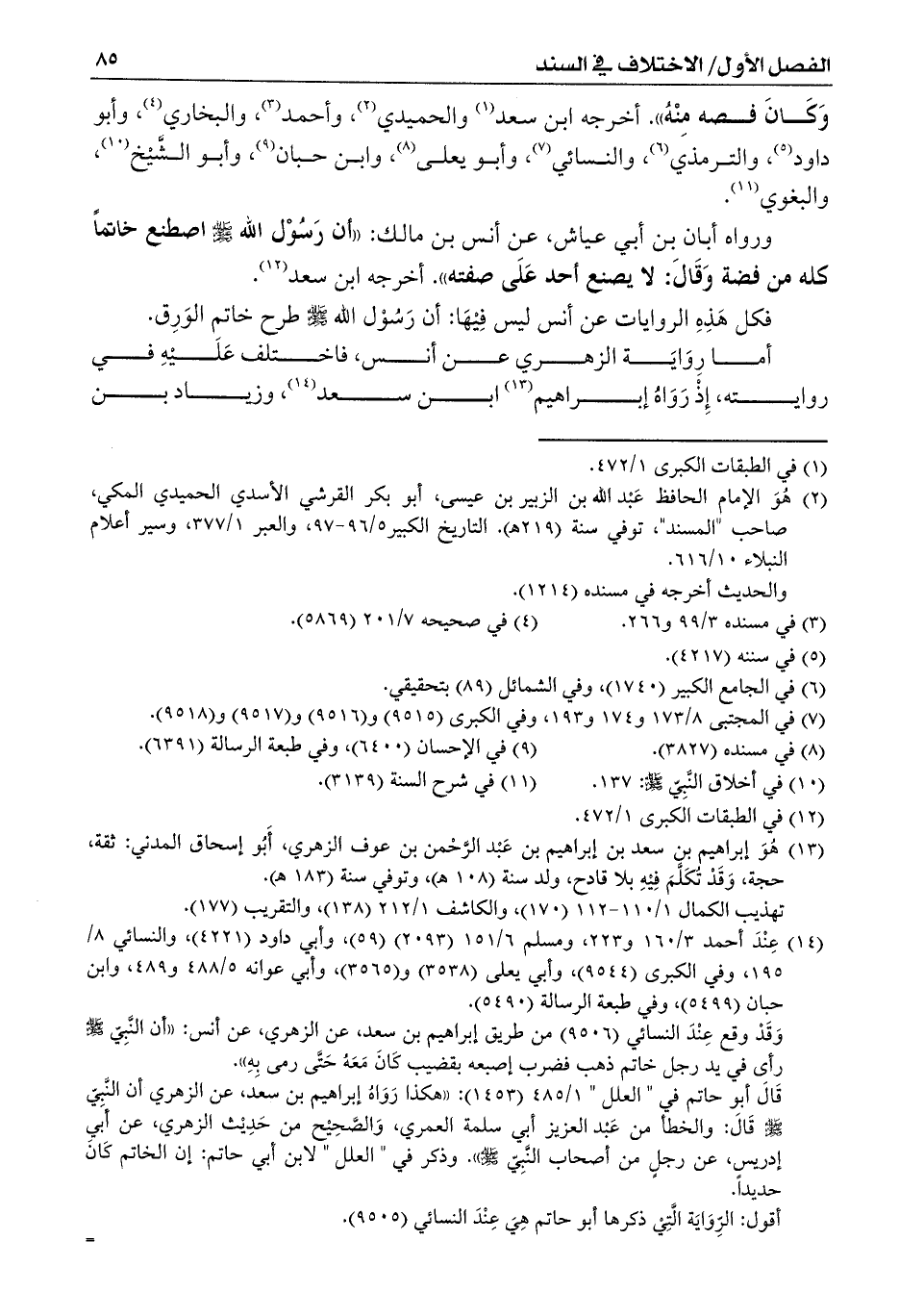 (¬13) هُوَ إبراهيم بن سعد بن إبراهيم بن عَبْد الرحمان بن عوف الزهري، أَبُو إسحاق المدني: ثقة، حجة، وَقَدْ تُكَلَّمَ فِيْهِ بلا قادح، ولد سنة (108 هـ)، وتوفي سنة (183 هـ).