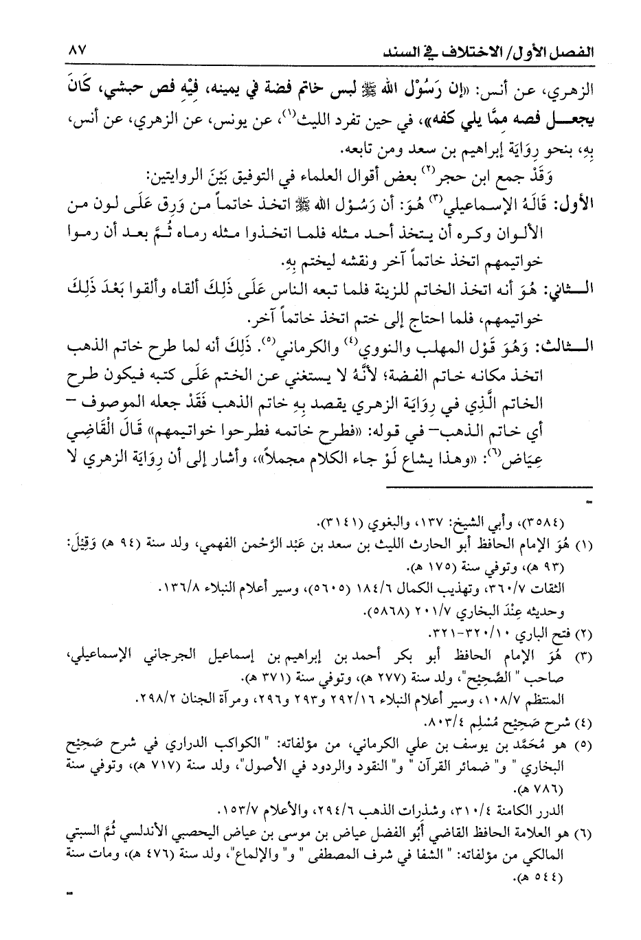 الثالث: وَهُوَ قَوْل المهلب والنووي (¬4) والكرماني (¬5). ذَلِكَ أنه لما طرح خاتم الذهب اتخذ مكانه خاتم الفضة؛ لأنَّهُ لا يستغني عن الختم عَلَى كتبه فيكون طرح الخاتم الَّذِي في رِوَايَة الزهري يقصد بِهِ خاتم الذهب فَقَدْ جعله الموصوف -أي خاتم الذهب- في قوله: ((فطرح خاتمه فطرحوا خواتيمهم)) قَالَ الْقَاضِي عِيَاض (¬6): ((وهذا يشاع لَوْ جاء الكلام مجملاً))، وأشار إلى أن رِوَايَة الزهري لا
