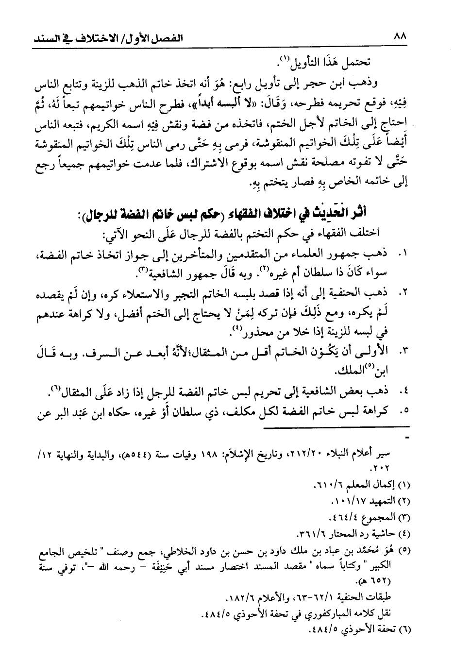 أثر الْحَدِيْث في اختلاف الفقهاء (حكم لبس خاتم الفضة للرجال):