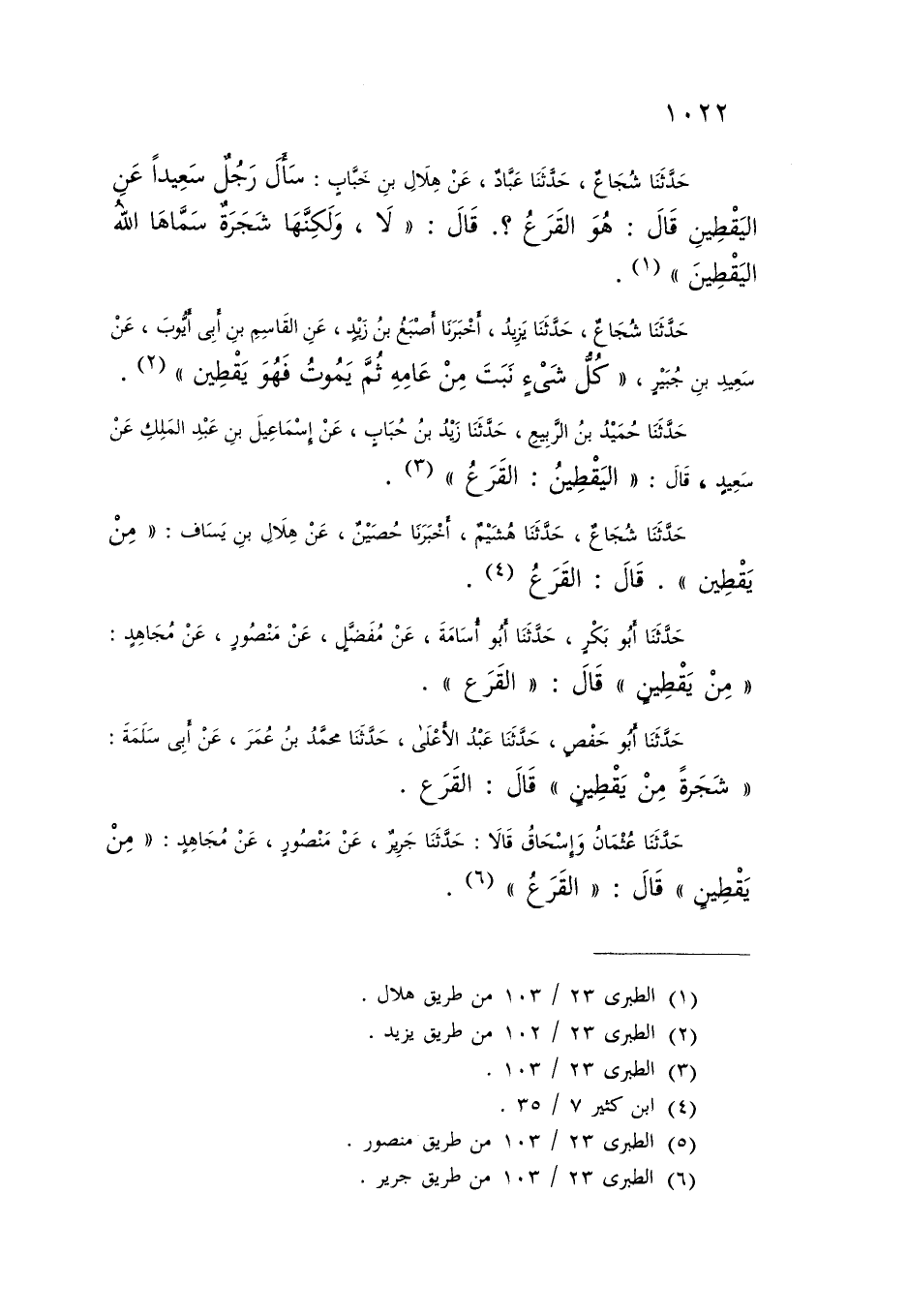 حَدَّثَنَا شُجَاعٌ، حَدَّثَنَا يَزِيدُ، أَخْبَرَنَا أَصْبَغُ بْنُ زَيْدٍ، عَنِ الْقَاسِمِ بْنِ أَبِي أَيُّوبَ، عَنْ سَعِيدِ بْنِ جُبَيْرٍ: «كُلُّ شَيْءٍ نَبَتَ مِنْ عَامِهِ ثُمَّ يَمُوتُ §فَهُوَ يَقْطِينٌ»