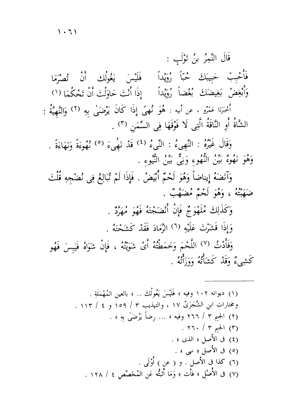 قَالَ النَّمِرُ بْنُ تَوْلَبٍ: