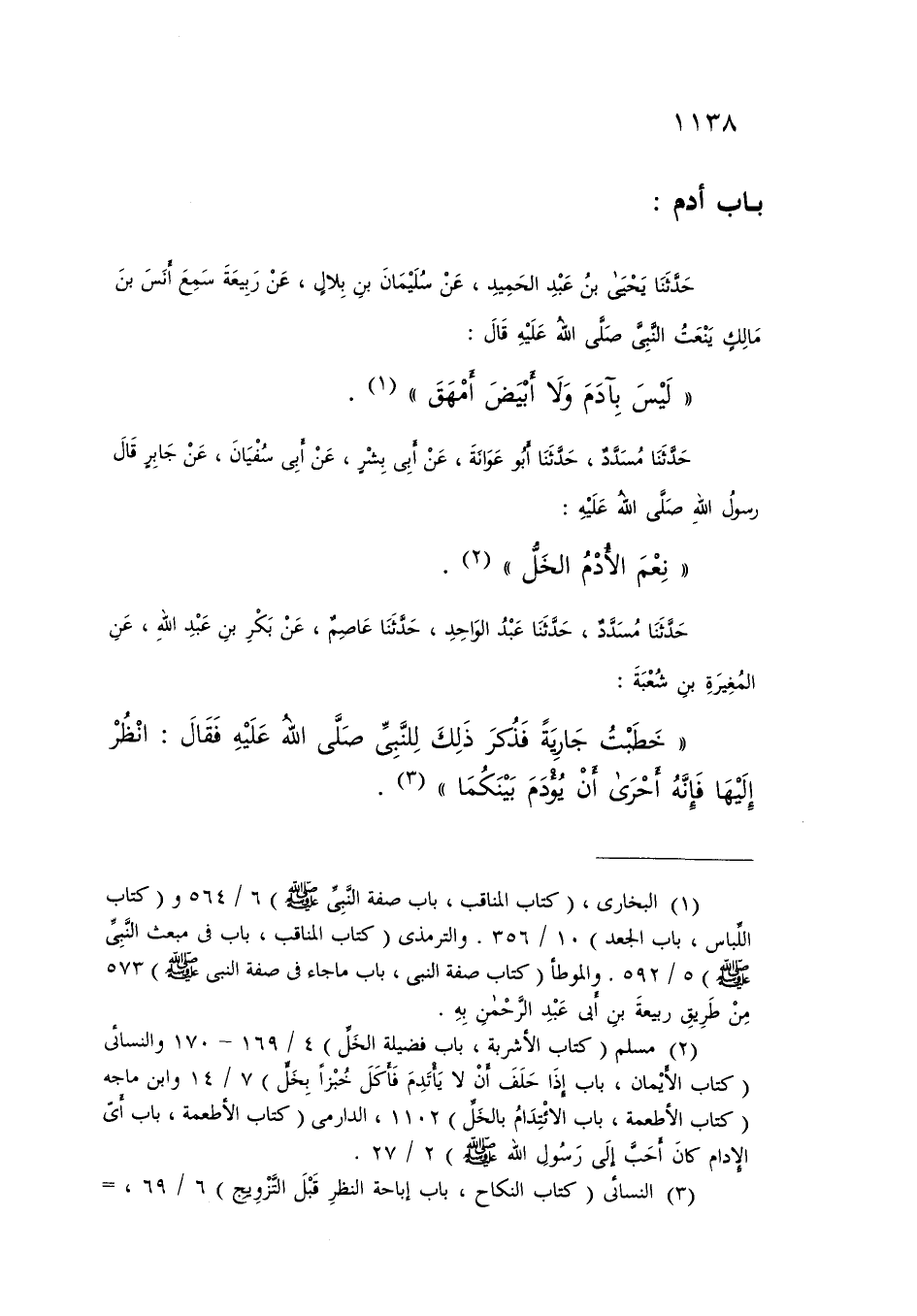 حَدَّثَنَا يَحْيَى بْنُ عَبْدِ الْحَمِيدِ، عَنْ سُلَيْمَانَ بْنِ بِلَالٍ، عَنْ رَبِيعَةَ، سَمِعَ أَنَسَ بْنَ مَالِكٍ، يَنْعَتُ النَّبِيَّ صَلَّى اللَّهُ عَلَيْهِ قَالَ: «§لَيْسَ بِآدَمَ وَلَا أَبْيَضَ أَمْهَقَ»