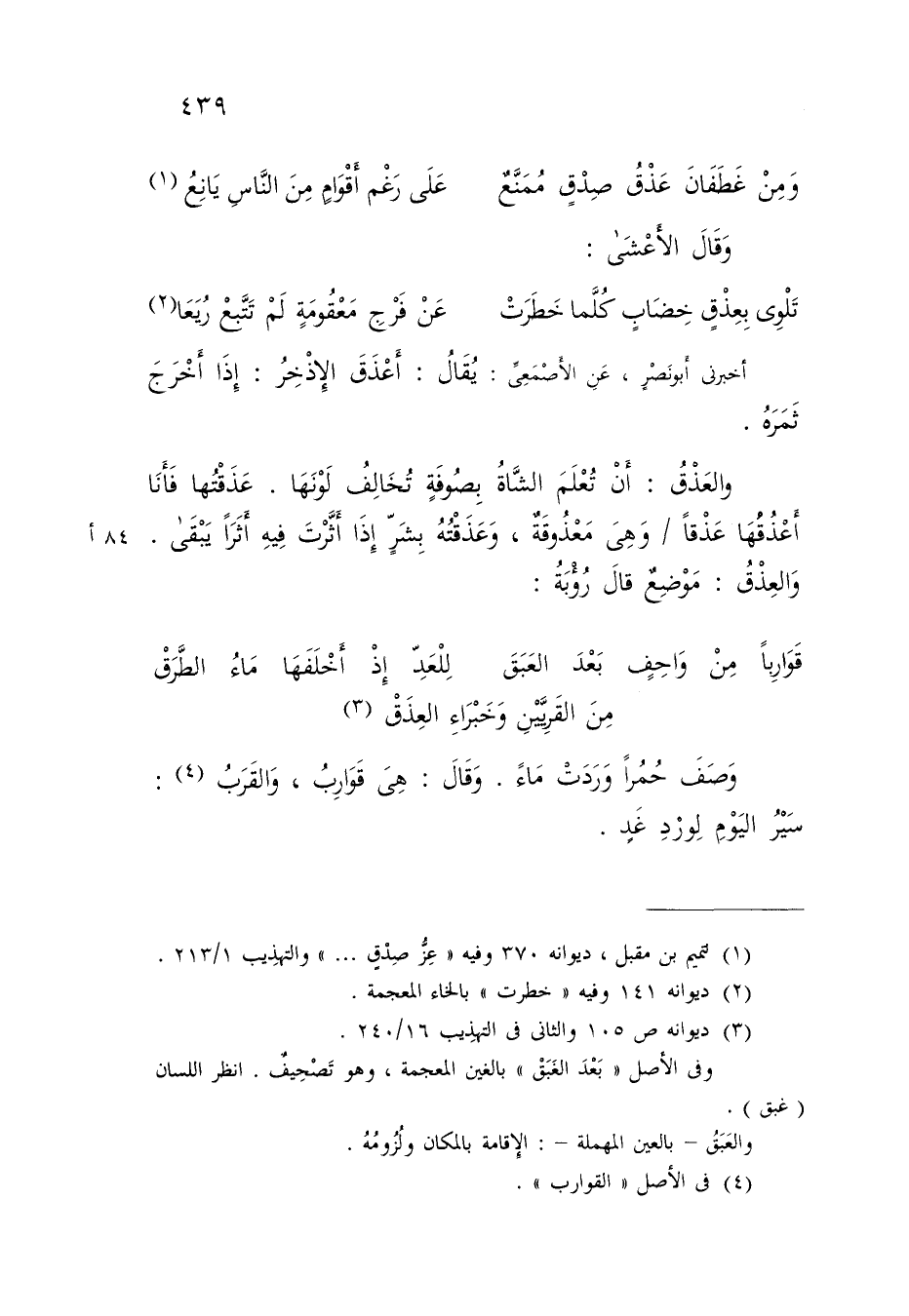وَصَفَ حُمُرًا وَرَدَتْ مَاءً , وَقَالَ: هِيَ قَوَارِبُ , وَالْقَرَبُ: سَيْرُ الْيَوْمِ لِوِرْدِ غَدٍ