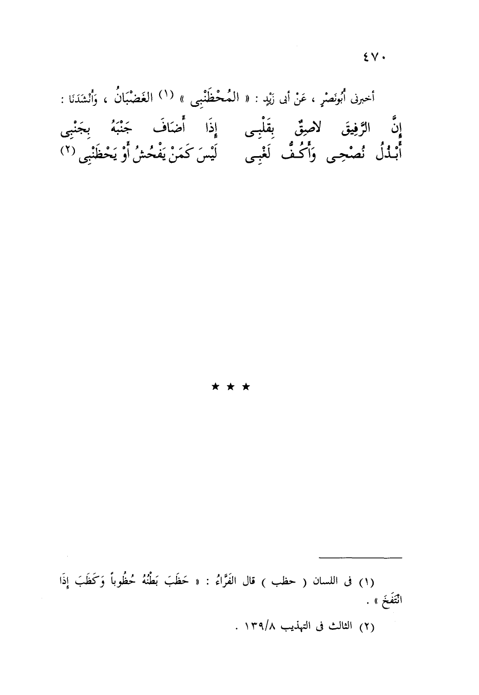 أَخْبَرَنِي أَبُو نَصْرٍ , عَنْ أَبِي زَيْدٍ الْمُحَظْنَبِيُّ: الْغَضْبَانُ , وَأَنْشَدَنَا:
