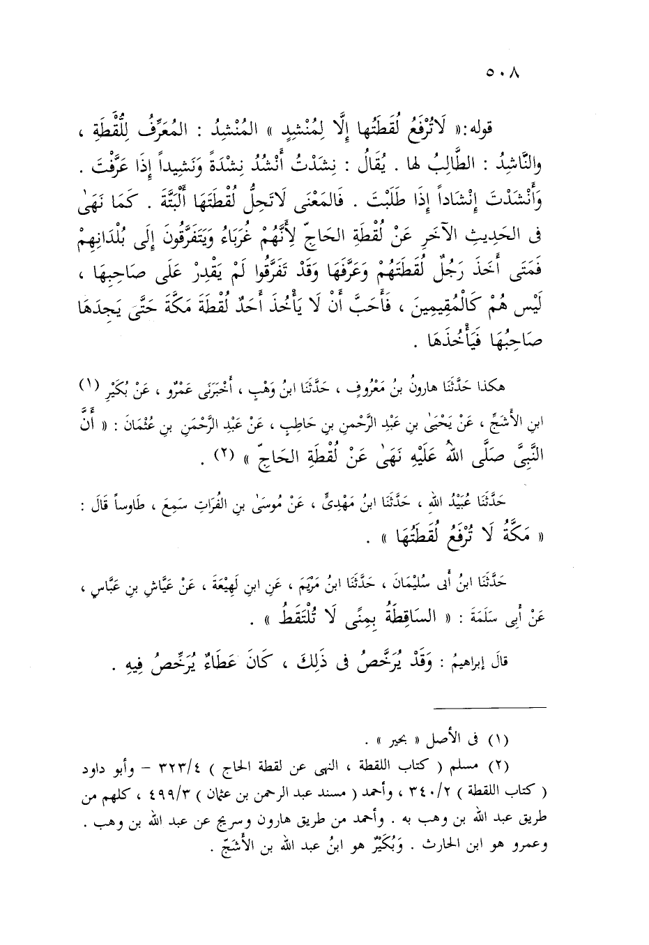 حَدَّثَنَا إِبْرَاهِيمُ بْنُ مُحَمَّدٍ , حَدَّثَنَا يُوسُفُ بْنُ يَزِيدَ , حَدَّثَنِي صَدَقَةُ بْنُ طَيْسَلَةَ , حَدَّثَنِي مَعْنُ بنُ ثَعْلَبَةَ الْمَازِنِيُّ وَالْحَيُّ , عَنْ أَعْشَى بَنِي مَازِنٍ: §رَأَيْتُ النَّبِيَّ صَلَّى اللَّهُ عَلَيْهِ فَأَنْشَدْتُهُ: يَا مَالِكَ الْمُلْكِ وَدَيَّانَ الْعَرَبِ قَوْلُهُ: «لَا تُرْفَعُ لُقَطَتُهَا إِلَّا لِمُنْشِدٍ» الْمُنْشِدُ: الْمُعَرِّفُ لِلُّقَطَةِ , وَالنَّاشِدُ: الطَّالِبُ لَهَا , يُقَالُ: نَشَدْتُ أَنْشُدُ نِشْدَةً وَنَشِيدًا إِذَا عَرَّفْتَ وَأَنْشَدْتَ إِنْشَادًا إِذَا طَلَبْتَ , فَالْمَعْنَى لَا تَحِلُّ لُقَطَتُهَا أَلْبَتَّةَ , كَمَا نَهَى فِي الْحَدِيثِ الْآخَرِ عَنْ لُقَطَةِ الْحَاجِّ؛ لِأَنَّهُمْ غُرَبَاءُ , وَيَتَفَرَّقُونَ إِلَى بُلْدَانِهِمْ , فَمَتَى أَخَذَ رَجُلٌ لُقَطَتَهُمْ وَعَرَّفَهَا وَقَدْ تَفَرَّقُوا لَمْ يَقْدِرْ عَلَى صَاحِبِهَا , لَيْسَ هُمْ كَالْمُقِيمِينَ , فَأَحَبَّ أَنْ لَا يَأْخُذَ أَحَدٌ لُقَطَةَ مَكَّةَ حَتَّى يَجِدَهَا صَاحِبُهَا , فَيَأْخُذَهَا