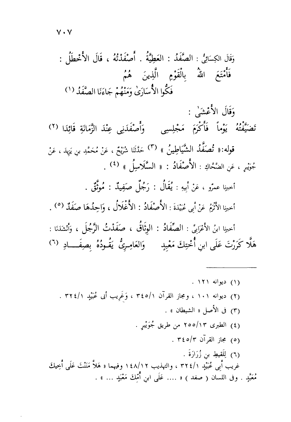 وَقَالَ الْكِسَائِيُّ: الصَّفَدُ: الْعَطِيَّةُ أَصْفَدْتُهُ قَالَ الْأَخْطَلُ: