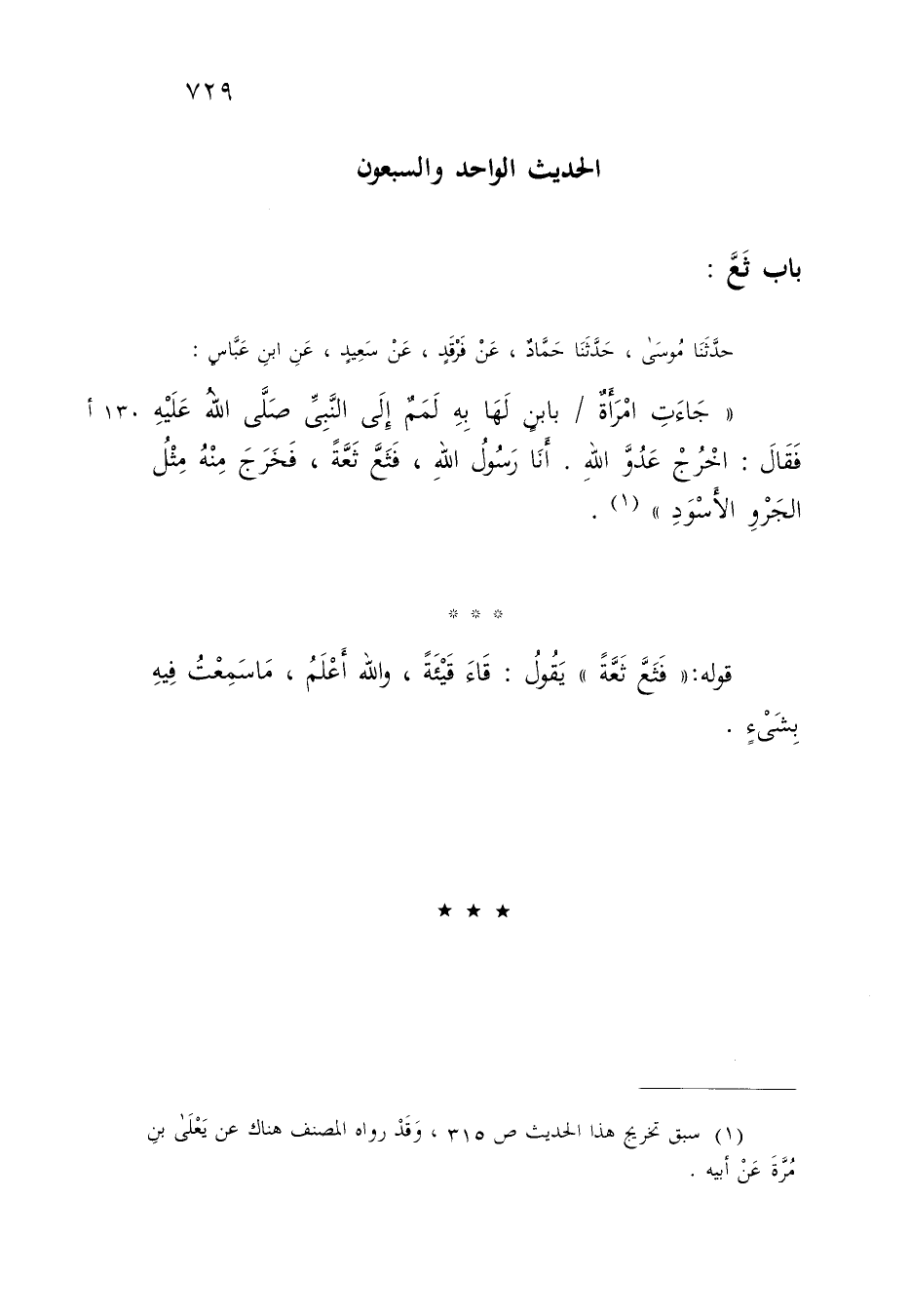 §الْحَدِيثُ الْوَاحِدُ وَالسَّبْعُونَ