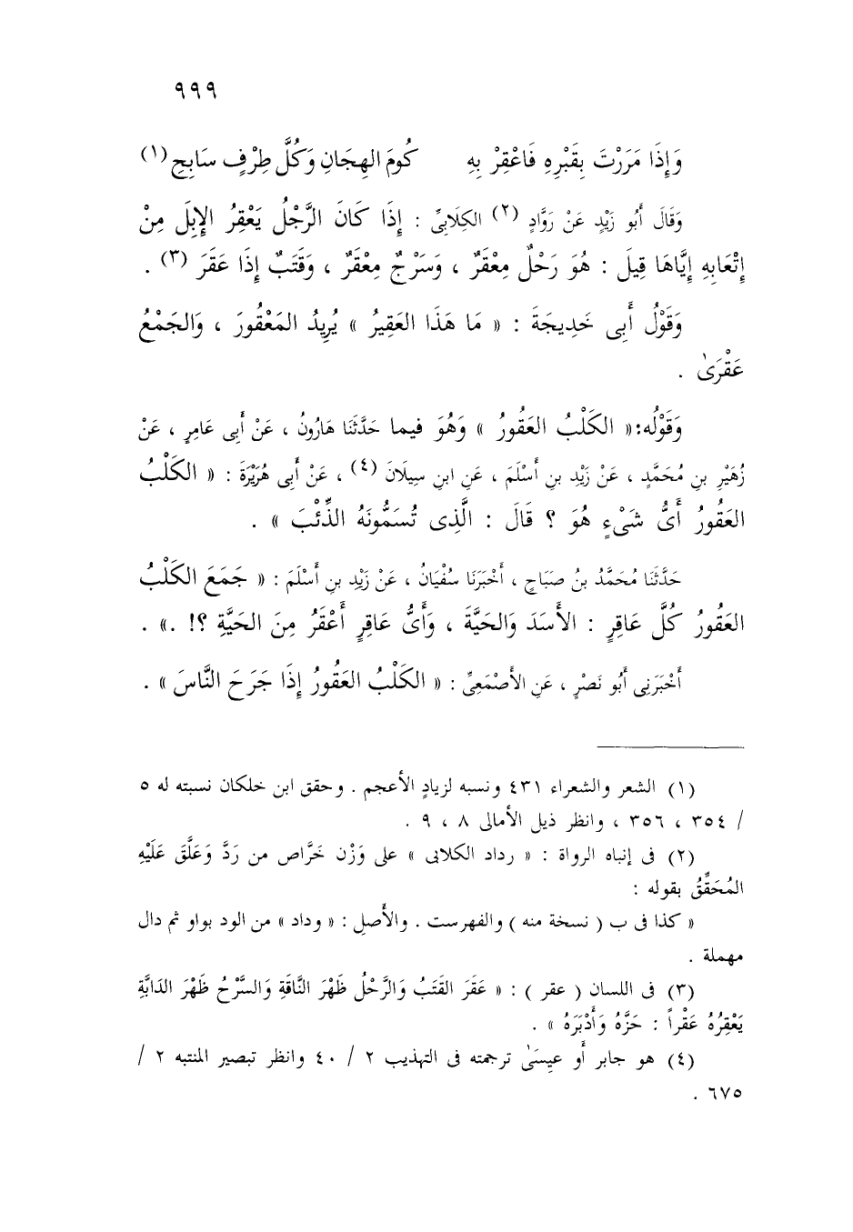 أَخْبَرَنِي أَبُو نَصْرٍ، عَنِ الْأَصْمَعِيِّ: «§الْكَلْبُ الْعَقُورُ إِذَا جَرَحَ النَّاسَ» -[1000]- قَوْلُهُ: «وَعُقِرُوا فِي مَجَالِسِهِمْ» ، وَحَدِيثُ أَنَسٍ «أَنَّ الْعَبَّاسَ عَقِرَ فِي مَجْلِسِهِ حِينَ أَخْبَرَهُ الْحَجَّاجُ أَنَّ مُحَمَّدًا صَلَّى اللَّهُ عَلَيْهِ قُتِلَ» وَمِثْلُهُ