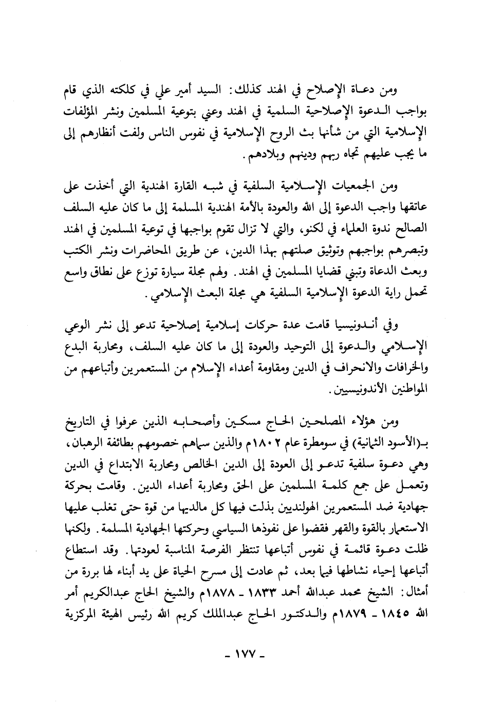 وفي أندونيسيا قامت عدة حركات إسلامية إصلاحية تدعو إلى نشر الوعي الإسلامي والدعوة إلى التوحيد والعودة إلى ما كان السلف، ومحاربة البدع والخرافات والانحراف في الدين ومقاومة أعداء الإسلام من المستعمرين وأتباعهم من المواطنين الأندونيسيين.