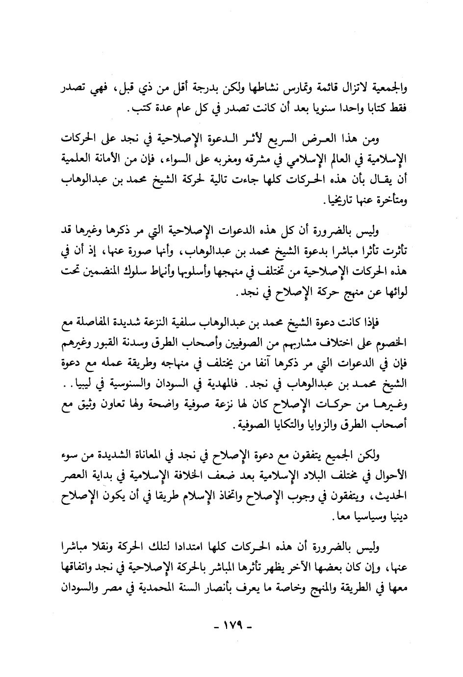 ومن هذه العرض السريع لأثر الدعوة الإصلاحية في نجد على الحركات الإسلامية في العالم الإسلامي في مشرقه ومغربه على السواء فإن من الأمانة العلمية أن يقال بأن هذه الحركات كلها تالية لحركة الشيخ محمد بن عبد الوهاب ومتأخرة عنها تاريخيا.