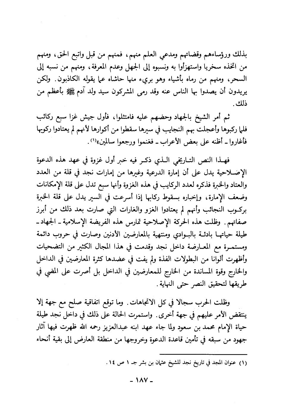 1 عنوان المجد في تاريخ نجد للشيخ عثمان بن بشر ج1 ص 14.