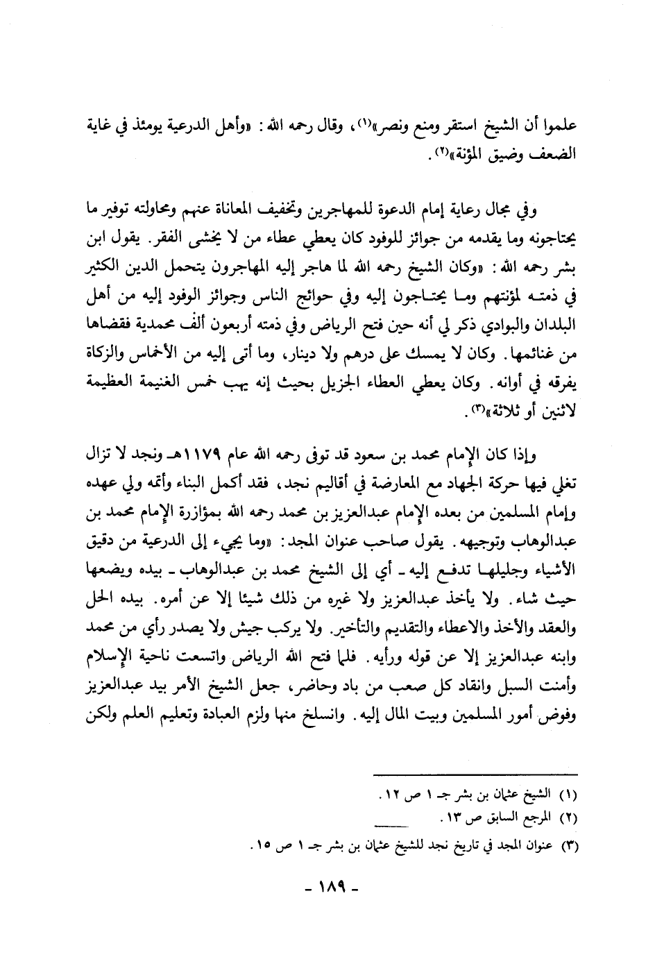 3 عنوان المجد في تاريخ نجد للشيخ عثمان بن بشر ج 1 ص 15.