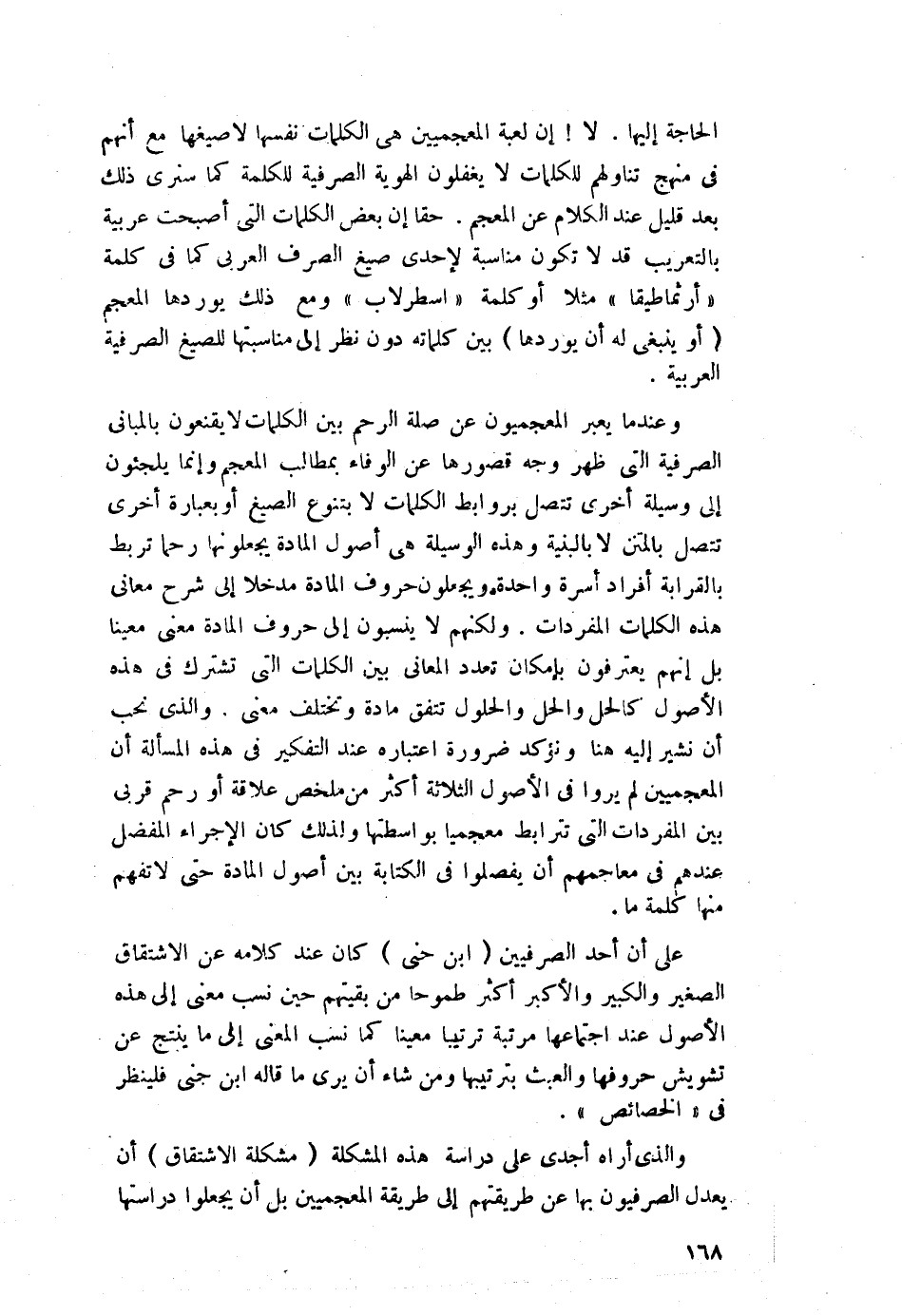 والذي أراه أجدى على دراسة هذه المشكلة "مشكلة الاشتقاق" أن يعدل الصرفيون بها عن طريقتهم إلى طريقة المعجميين, بل أن يجعلوا دراستها