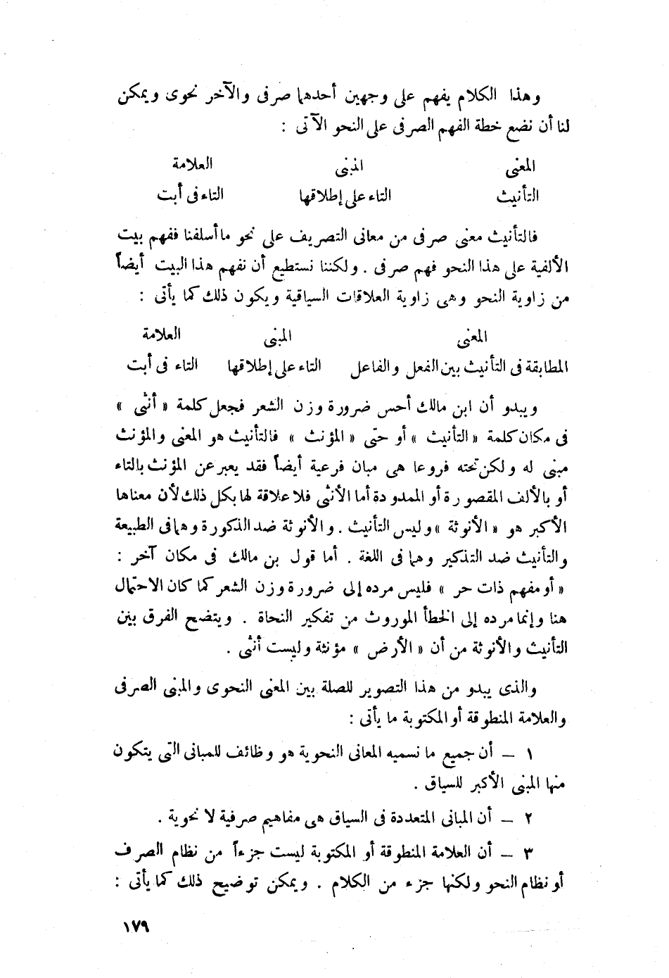 والذي يبدو من هذا التصوير للصلة بين المعنى النحوي والمبنى الصرفي والعلامة المنطوقة أو المكتوبة ما يأتي: