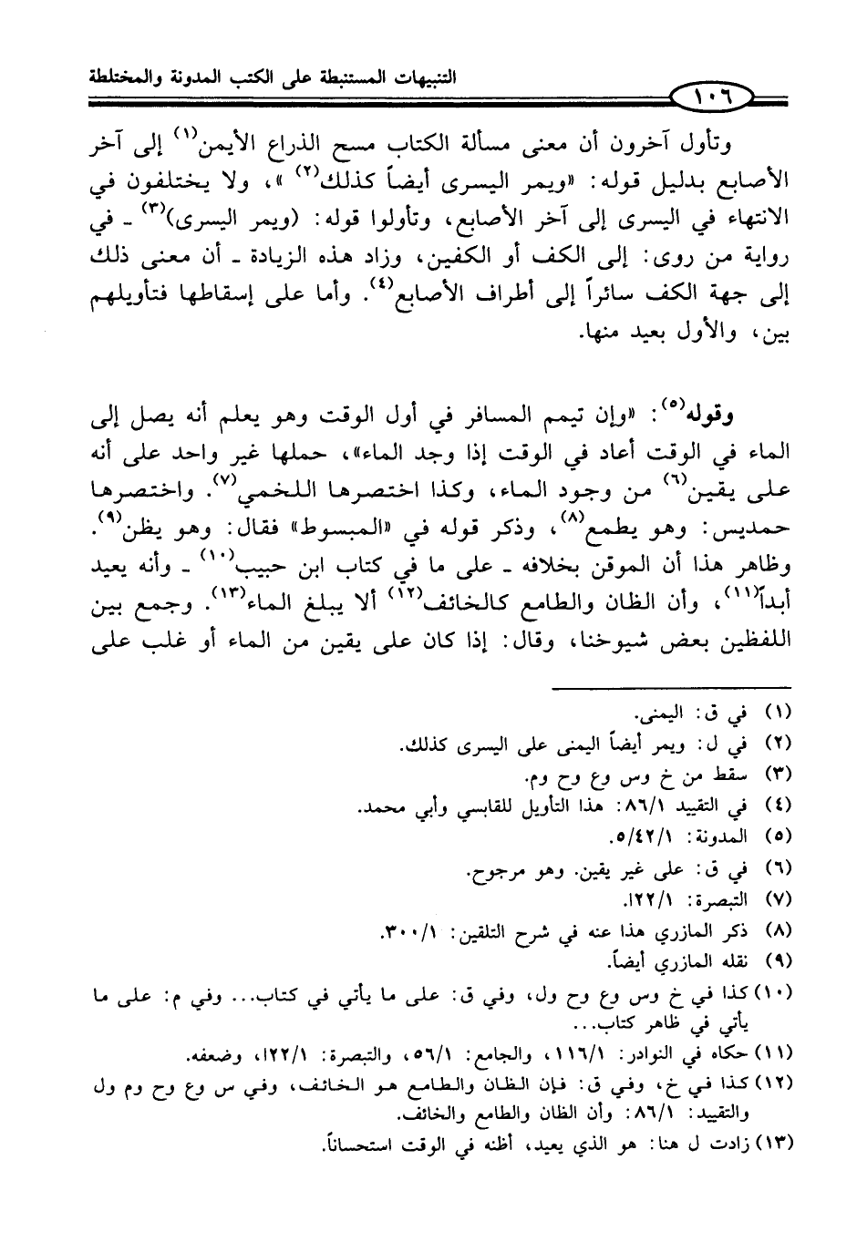 (¬11) حكاه في النوادر: 1/ 116، والجامع: 1/ 56، والتبصرة: 1/ 22 أ، وضعفه.