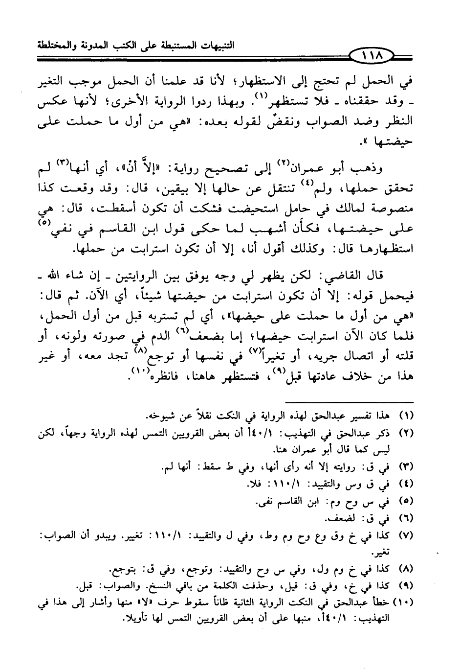 (¬10) خطأ عبد الحق في النكت الرواية الثانية ظاناً سقوط حرف "لا" منها وأشار إلى هذا في التهذيب: 1/ 40 أ، منبها على أن بعض القرويين التمس لها تأويلا.