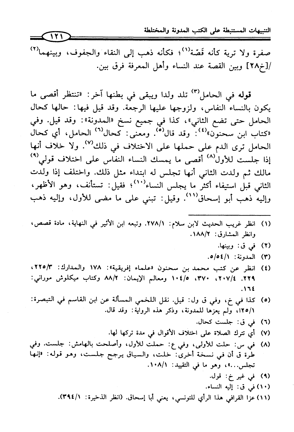 (¬11) عزا القرافي هذا الرأي للتونسي، يعني أبا إسحاق. (انظر الذخيرة: 1/ 394).