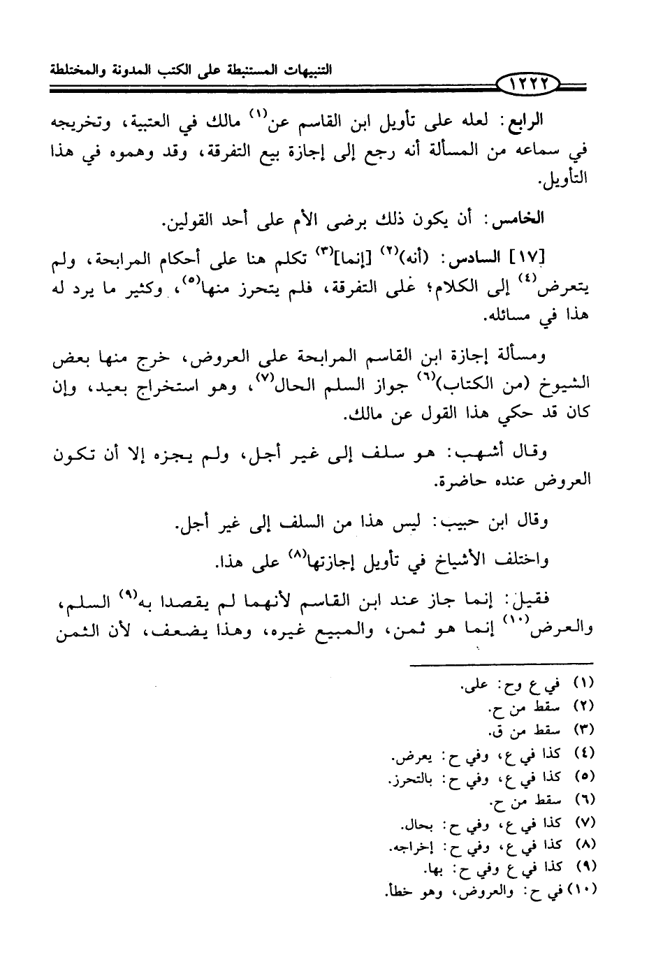 [17] السادس: (أنه) (¬2) [إنما] (¬3) تكلم هنا على أحكام المرابحة، ولم يتعرض (¬4) إلى الكلام؛ على التفرقة، فلم يتحرز منها (¬5)، وكثير ما يرد له هذا في مسائله.
