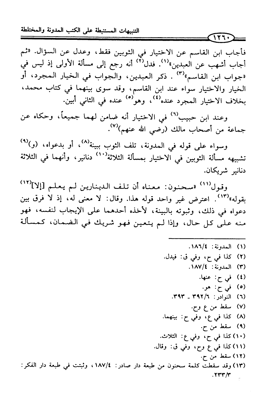 (¬13) وقد سقطت كلمة سحنون من طبعة دار صادر: 4/ 187، وثبتت في طبعة دار الفكر: 3/ 233.