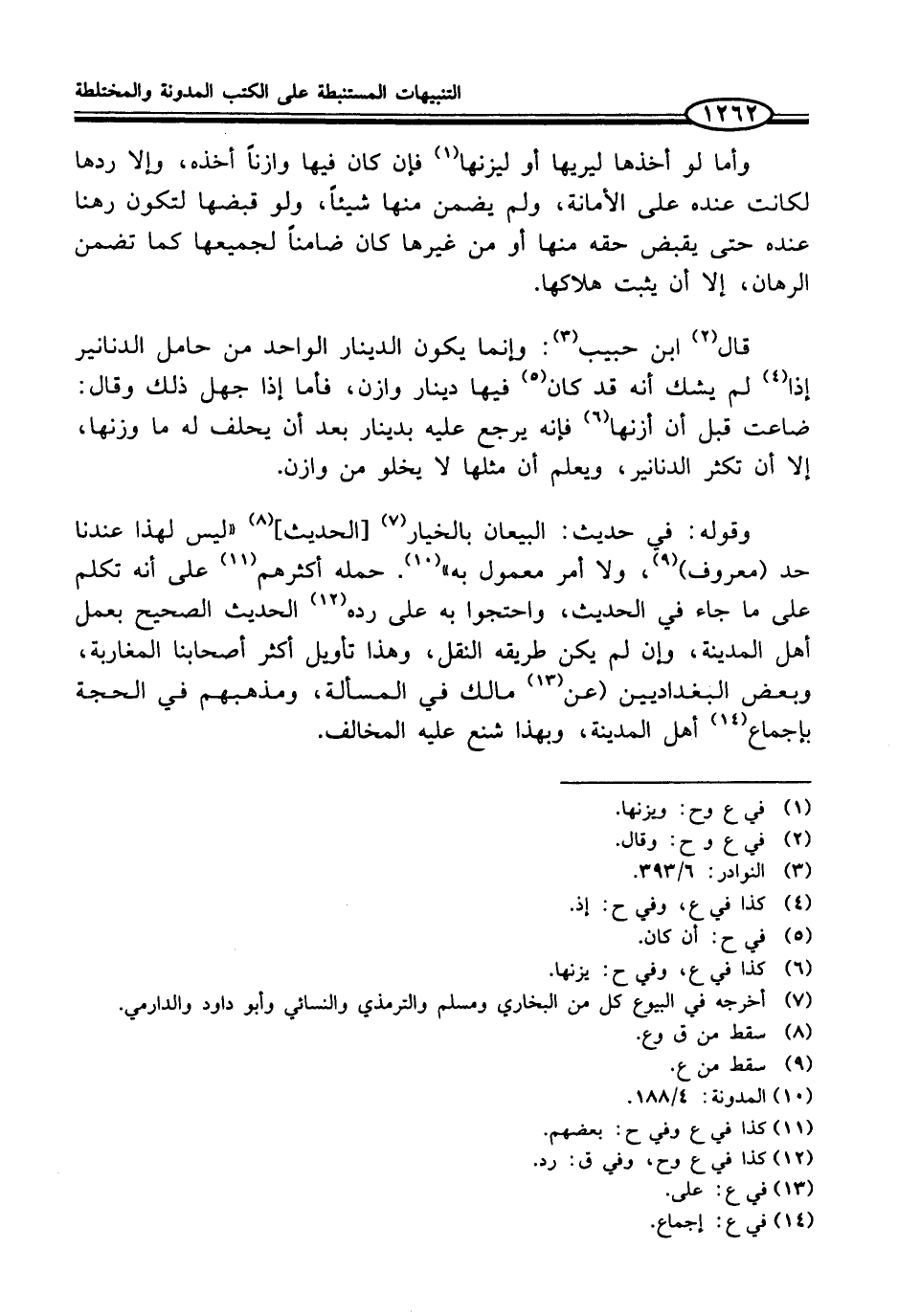 (¬7) أخرجه في البيوع كل من البخاري ومسلم والترمذي والنسائي وأبو داود والدارمي.