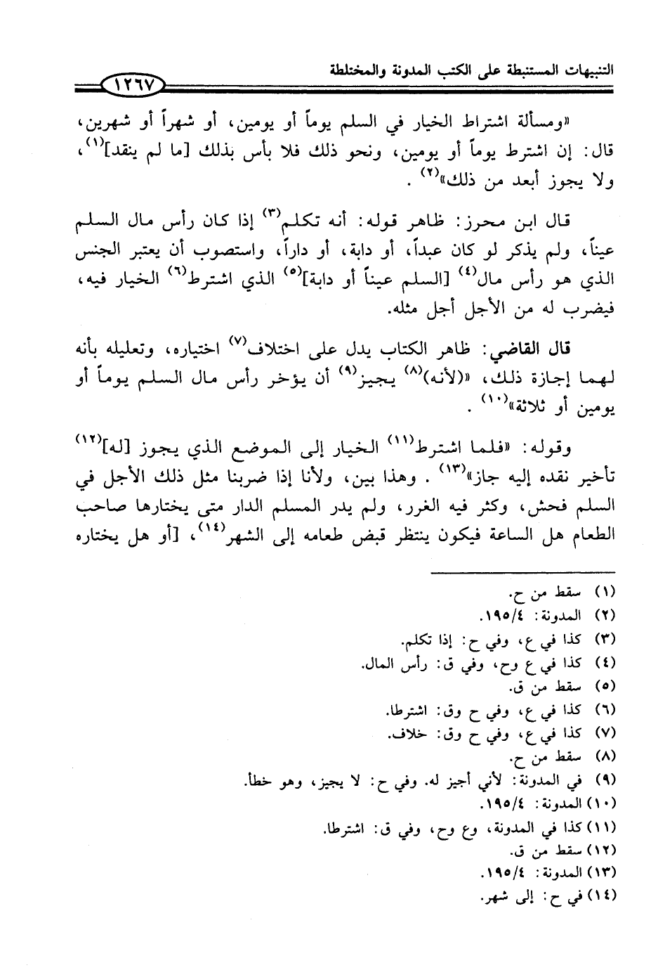 قال ابن محرز: ظاهر قوله: أنه تكلم (¬3) إذا كان رأس مال السلم عيناً، ولم يذكر لو كان عبداً، أو دابة، أو داراً، واستصوب أن يعتبر الجنس الذي هو رأس مال (¬4) [السلم عيناً أو دابة] (¬5) الذي اشترط (¬6) الخيار فيه، فيضرب له من الأجل أجل مثله.