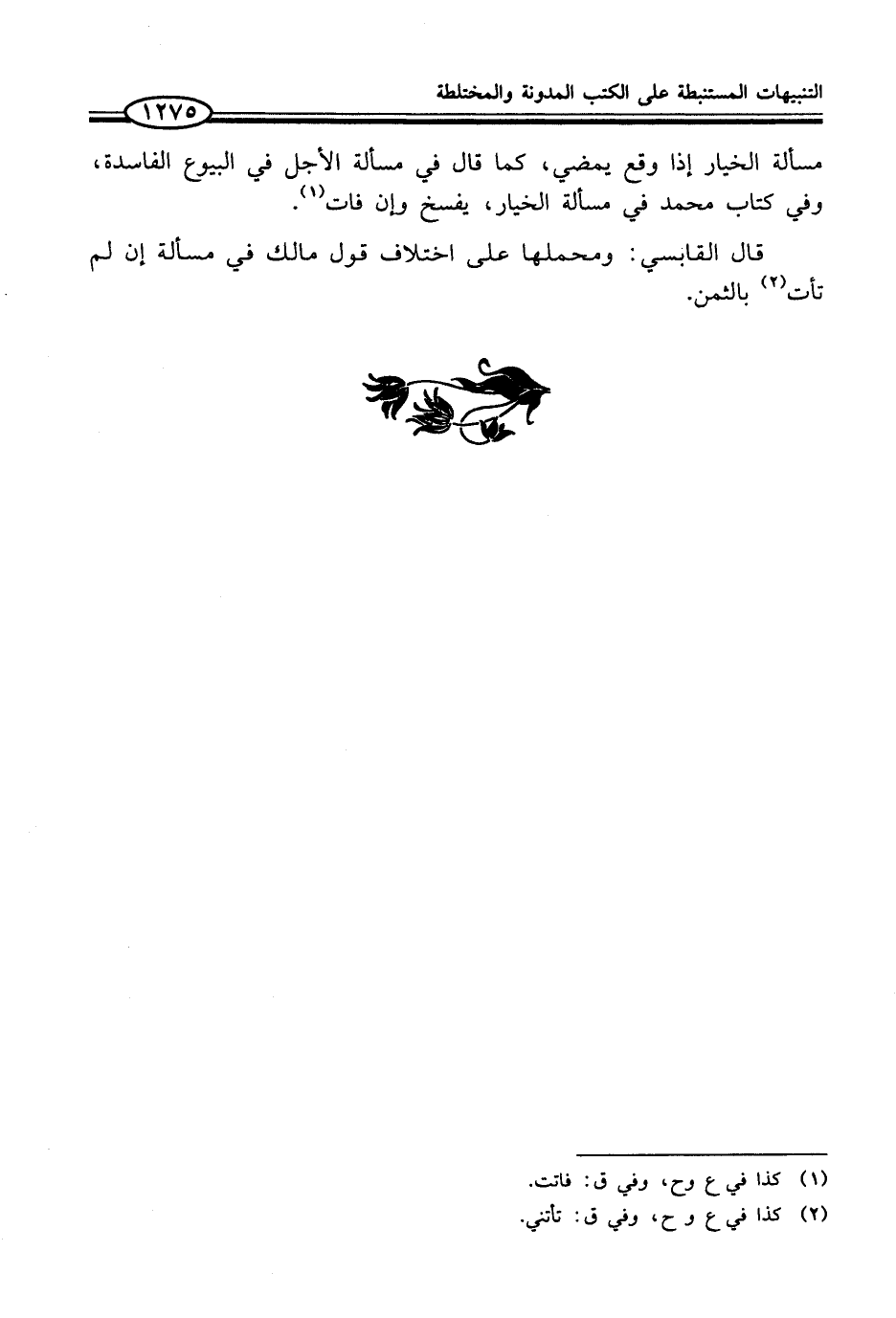 قال القابسي: ومحملها على اختلاف قول مالك في مسألة إن لم تأت (¬2) بالثمن.