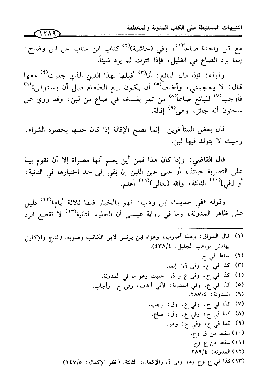 (¬1) قال المواق: وهذا أصوب، وعزاه ابن يونس لابن الكاتب وصوبه. (التاج والإكليل بهامش مواهب الجليل: 4/ 438).
