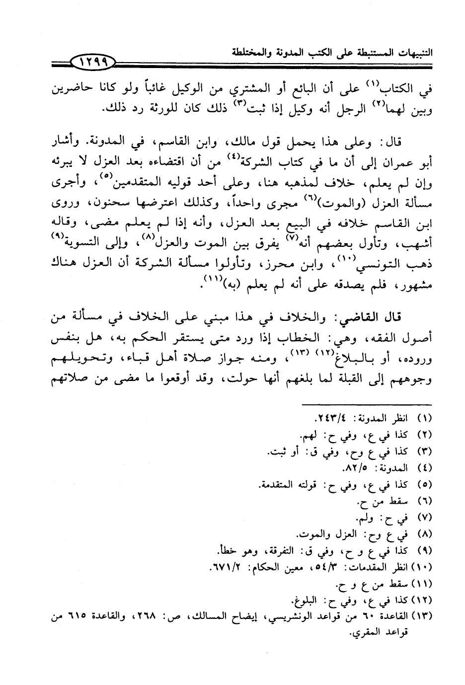 (¬13) القاعدة 60 من قواعد الونشريسي، إيضاح المسالك، ص: 268، والقاعدة 615 من قواعد المقري.