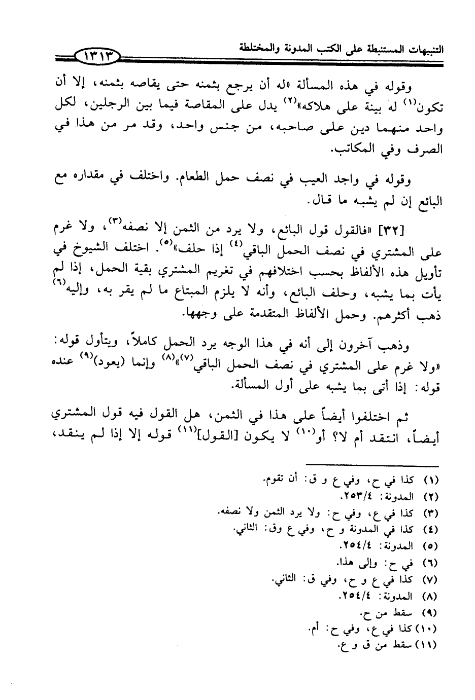 [32] "فالقول قول البائع، ولا يرد من الثمن إلا نصفه (¬3)، ولا غرم على المشتري في نصف الحمل الباقي (¬4) إذا حلف" (¬5). اختلف الشيوخ في تأويل هذه الألفاظ بحسب اختلافهم في تغريم المشتري بقية الحمل، إذا لم يأت بما يشبه، وحلف البائع، وأنه لا يلزم المبتاع ما لم يقر به، وإليه (¬6) ذهب أكثرهم. وحمل الألفاظ المتقدمة على وجهها.
