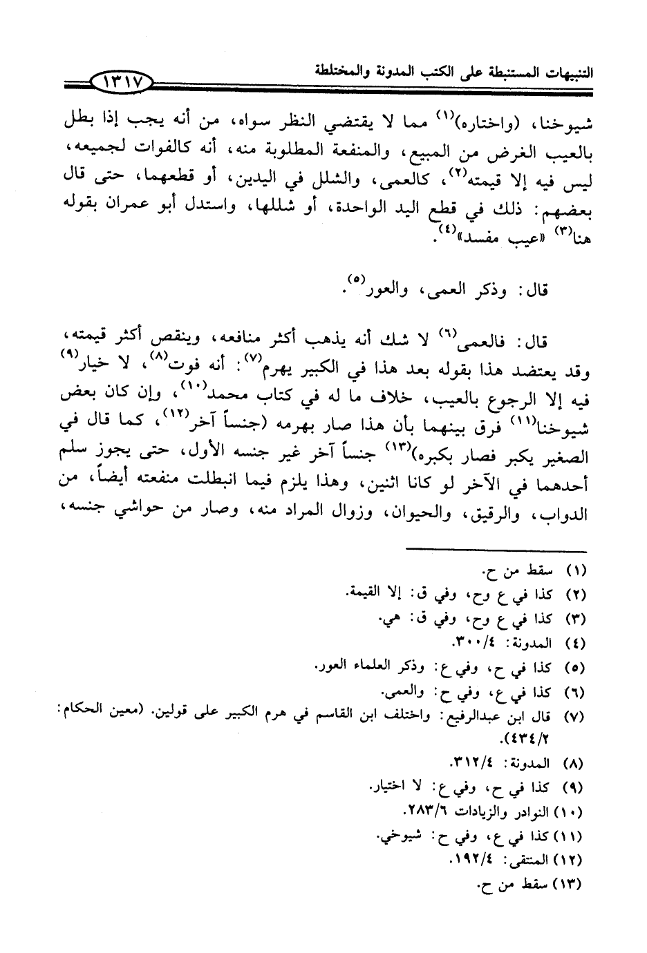 قال: فالعمى (¬6) لا شك أنه يذهب أكثر منافعه، وينقص أكثر قيمته، وقد يعتضد هذا بقوله بعد هذا في الكبير يهرم (¬7): أنه فوت (¬8)، لا خيار (¬9) فيه إلا الرجوع بالعيب، خلاف ما له في كتاب محمد (¬10)، وإن كان بعض شيوخنا (¬11) فرق به بينهما بأن هذا صار بهرمه (جنساً آخر (¬12)، كما قال في الصغير يكبر فصار بكبره) (¬13) جنساً آخر غير جنسه الأول، حتى يجوز سلم أحدهما في الآخر لو كانا اثنين، وهذا يلزم فيما انبطلت منفعته أيضاً، من الدواب، والرقيق، والحيوان، وزوال المراد منه، وصار من حواشي جنسه،
