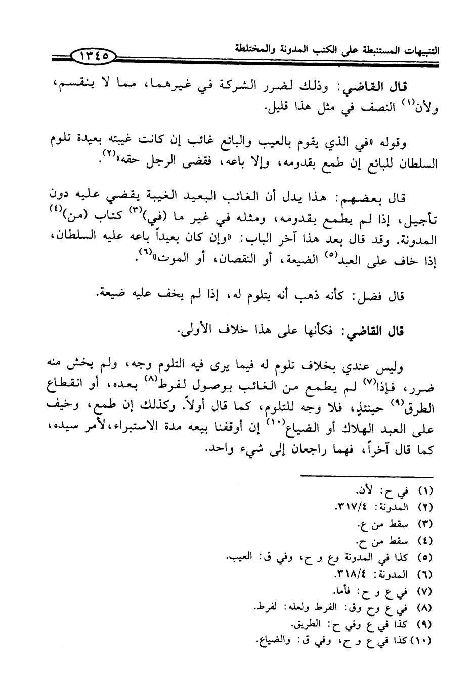 (¬5) كذا في المدونة وع وح، وفي ق: العيب.