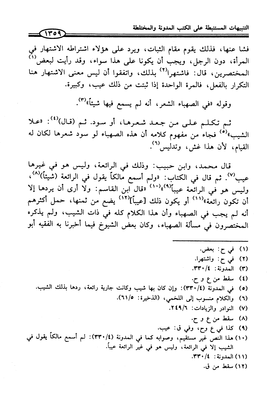 (¬10) هذا النص غير مستقيم، وصوابه كما في المدونة (4/ 330): لم أسمع مالكاً يقول في الشيب إلا في الرائعة، وليس هو في غير الرائعة عيباً.