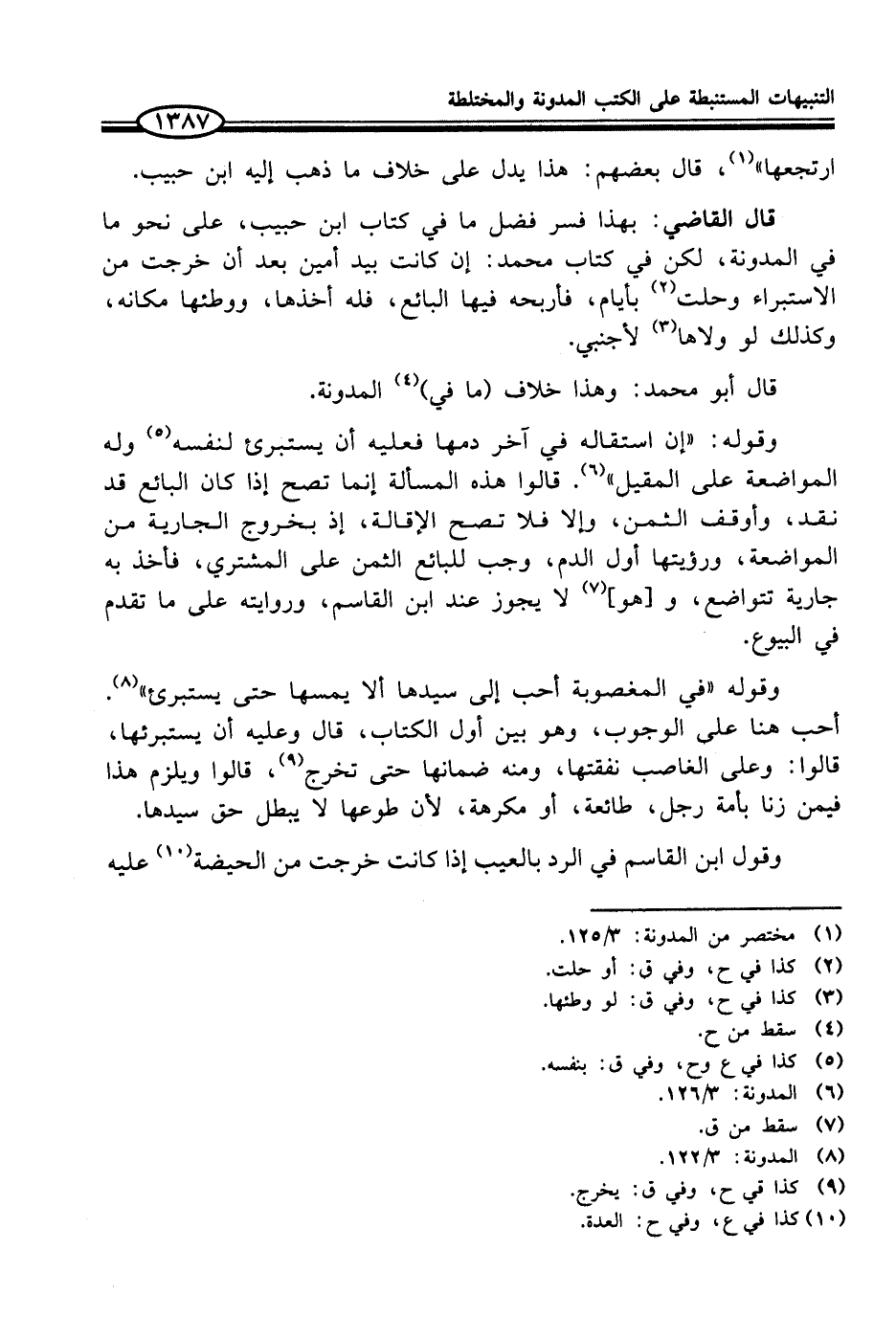 وقول ابن القاسم في الرد بالعيب إذا كانت خرجت من الحيض (¬10) عليه