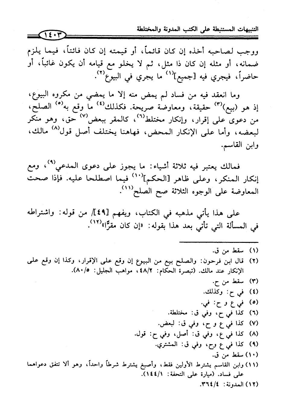 على هذا يأتي مذهبه في الكتاب، ويفهم [49] / من قوله: واشتراطه في المسألة التي تأتي بعد هذا بقوله: "إن كان مقرًّا" (¬12).