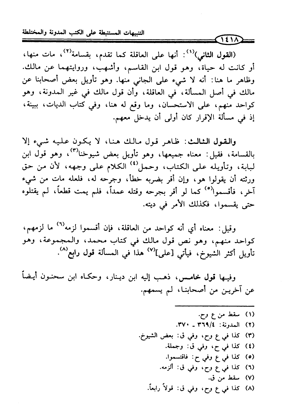 (¬2) المدونة: 4/ 369 - 370.