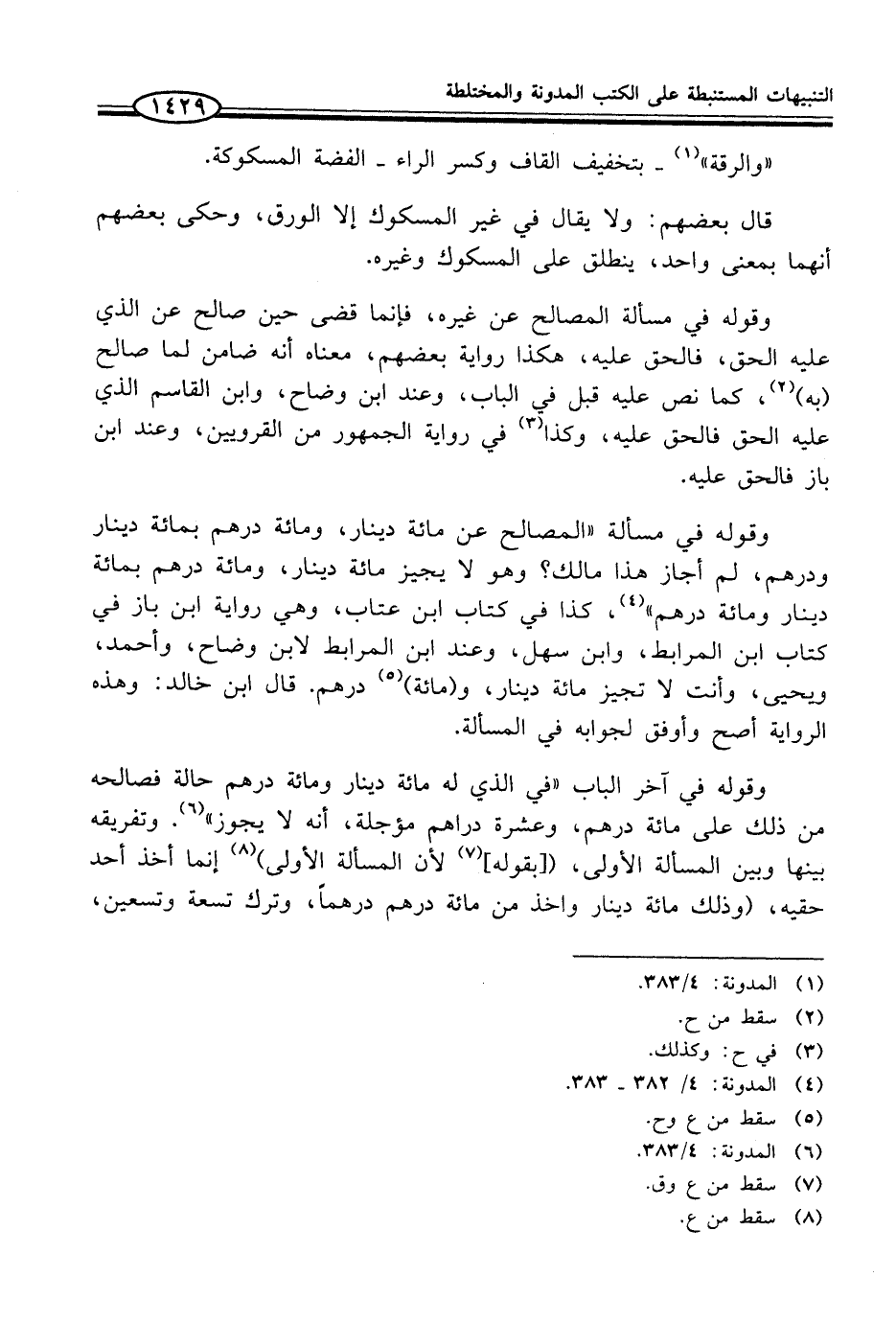 وقوله في مسألة "المصالح عن مائة دينار، ومائة درهم بمائة دينار ودرهم، لم أجاز هذا مالك؟ وهو لا يجيز مائة دينار، ومائة درهم بمائة دينار ومائة درهم" (¬4)، كذا في كتاب ابن عتاب، وهي رواية ابن باز في كتاب ابن المرابط، وابن سهل، وعند ابن المرابط لابن وضاح، وأحمد، ويحيى، وأنت لا تجيز مائة دينار، و (مائة) (¬5) درهم. قال ابن خالد: وهذه الرواية أصح وأوفق لجوابه في المسألة.