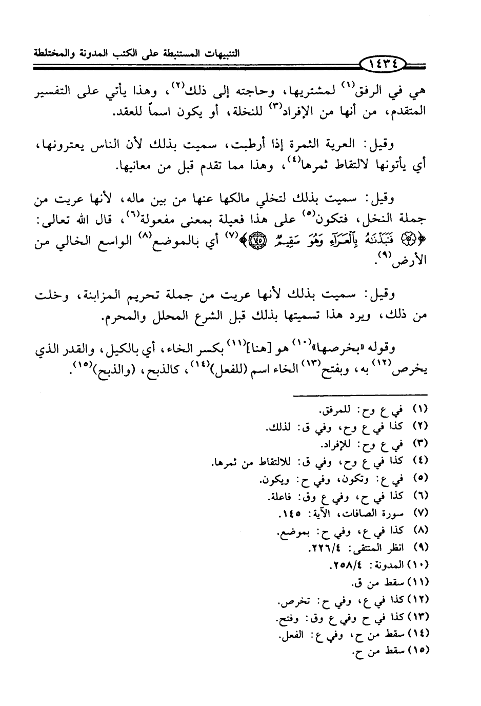 وقيل: سميت بذلك لتخلي مالكها عنها من بين ماله، لأنها عريت من جملة النخل، فتكون (¬5) على هذا فعيلة بمعنى مفعولة (¬6)، قال الله تعالى: {فَنَبَذْنَاهُ بِالْعَرَاءِ وَهُوَ سَقِيمٌ (145)} (¬7) أي بالموضع (¬8) الواسع الخالي من الأرض (¬9).