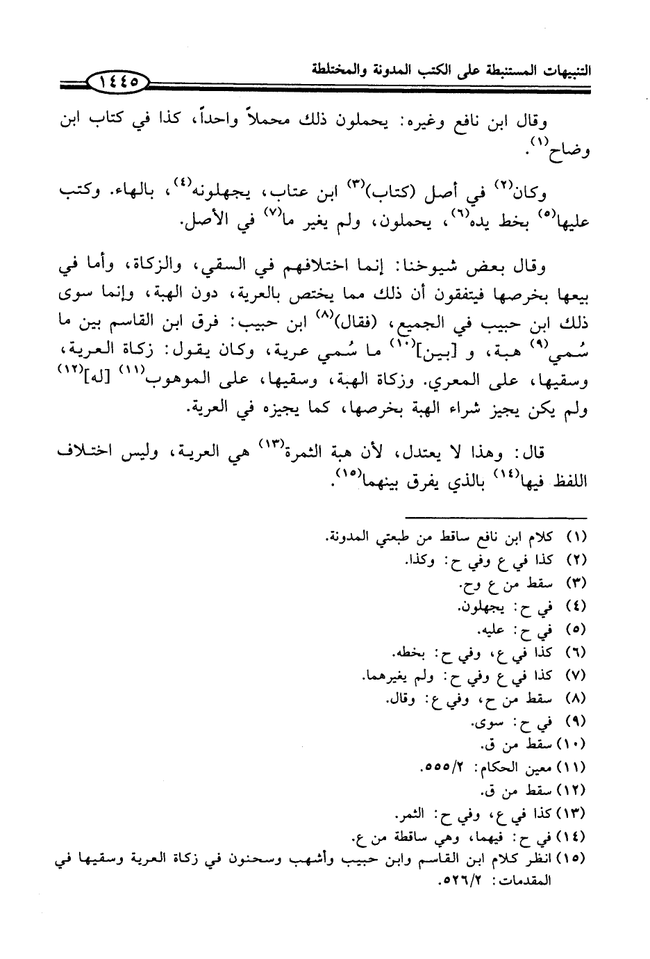 (¬15) انظر كلام ابن القاسم وابن حبيب وأشهب وسحنون في زكاة العرية وسقيها في المقدمات: 2/ 526.