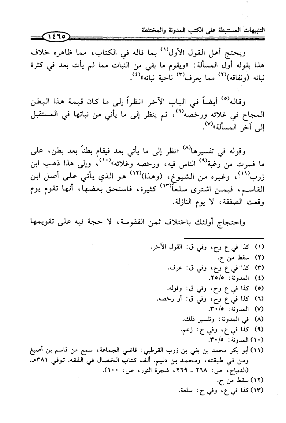 (¬11) أبو بكر محمد بن بقي بن زرب القرطبي: قاضي الجماعة، سمع من قاسم بن أصبغ ومن في طبقته، ومحمد بن دليم. ألف كتاب الخصال في الفقه. توفي 381 هـ. (الديباج، ص: 268 - 269، شجرة النور، ص: 100).