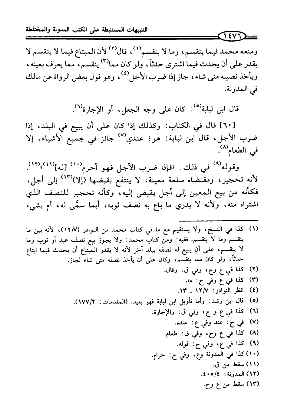 (¬5) قال ابن رشد: وأما تأويل ابن لبابة فهو بعيد. (المقدمات: 2/ 177).