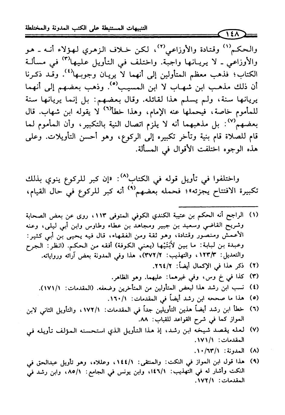 (¬4) نسب ابن رشد هذا لبعض المتأولين من المتأخرين وضعفه. (المقدمات: 1/ 171).