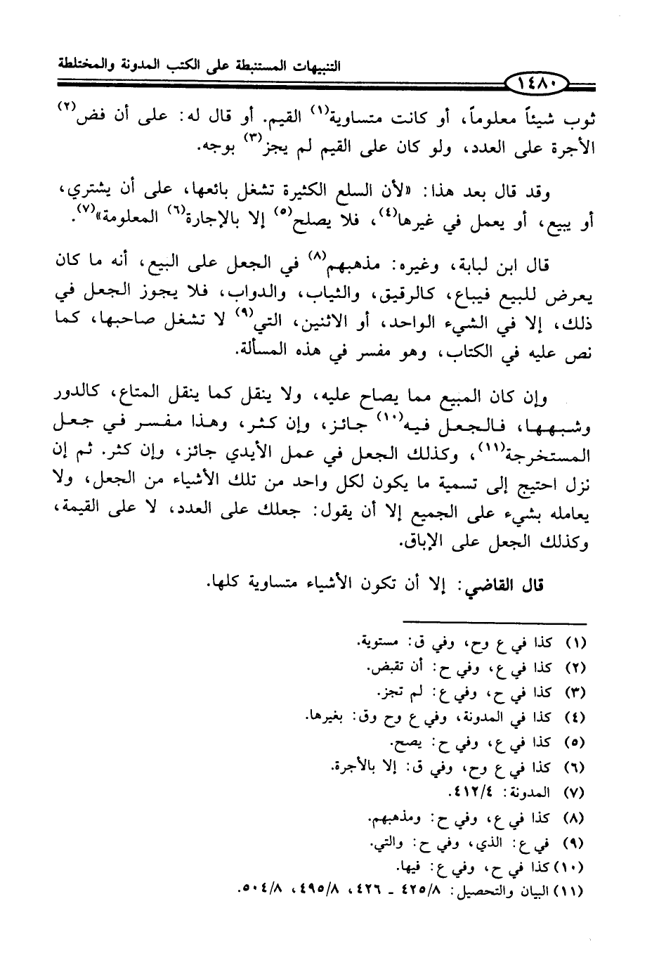 (¬11) البيان والتحصيل: 8/ 425 - 426، 8/ 495، 8/ 504.