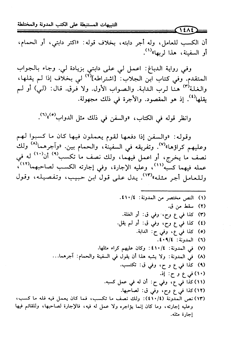 (¬13) نص المدونة (4/ 410): ولك نصف ما تكسب، فما كان يعمل فيه فله ما كسب، وعليه إجارته، وما كان إنما يؤاجره ولا عمل له فيه، فالإجارة لحاجها، وللقائم فيها إجارة مثله.