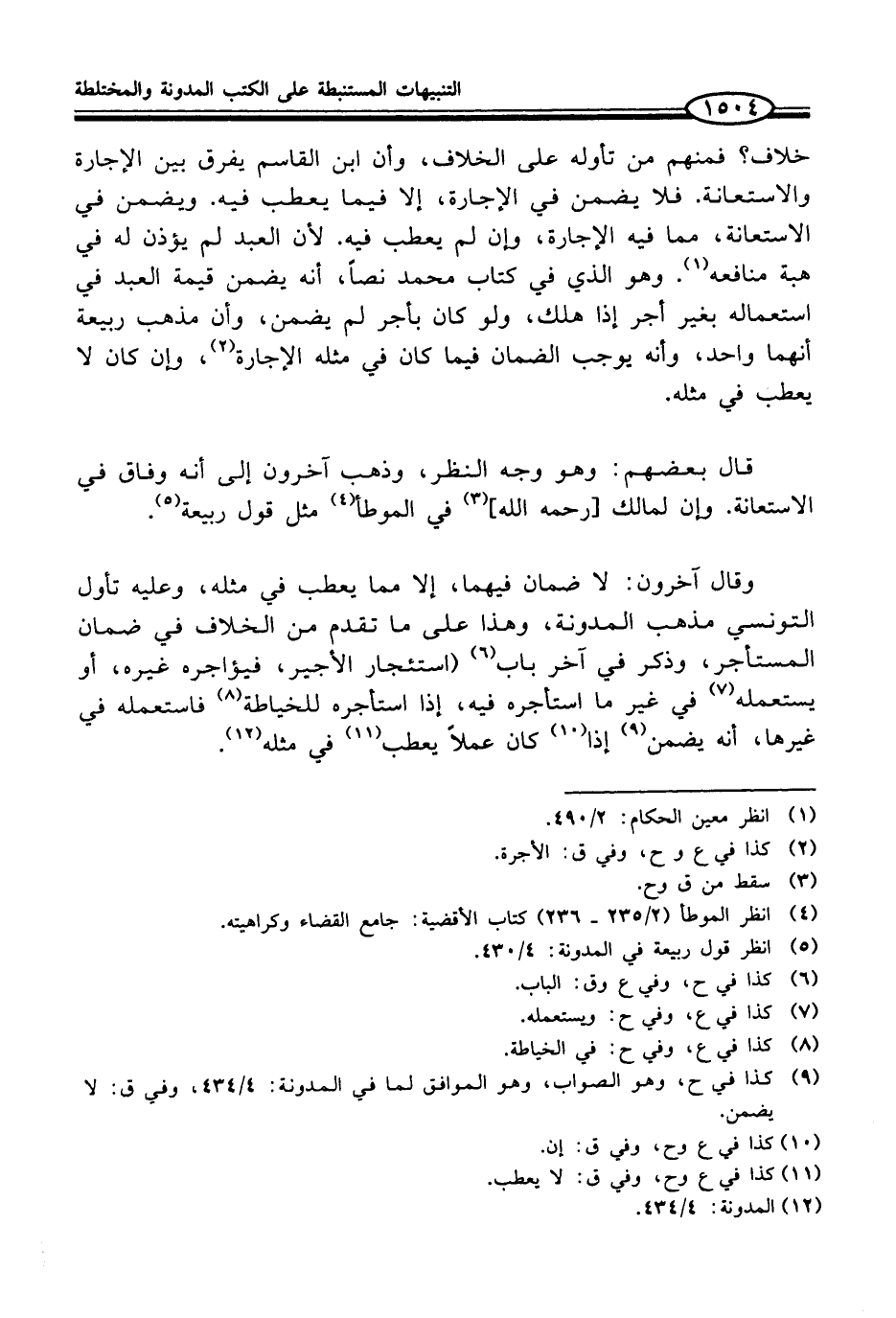 (¬5) انظر قول ربيعة في المدونة: 4/ 430.