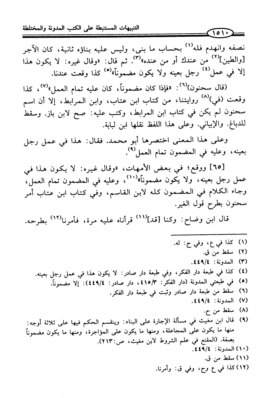 (قال سحنون) (¬6): "فإذا كان مضموناً، كان عليه تمام العمل" (¬7)، كذا وقعت (في) (¬8) روايتنا، من كتاب ابن عتاب، وابن المرابط، إلا أن اسم سحنون لم يكن في كتاب ابن المرابط، وكتب عليه: صح لابن باز. وسقط للدباغ. والإبياني. وعلى هذا اللفظ نقلها ابن لبابة.