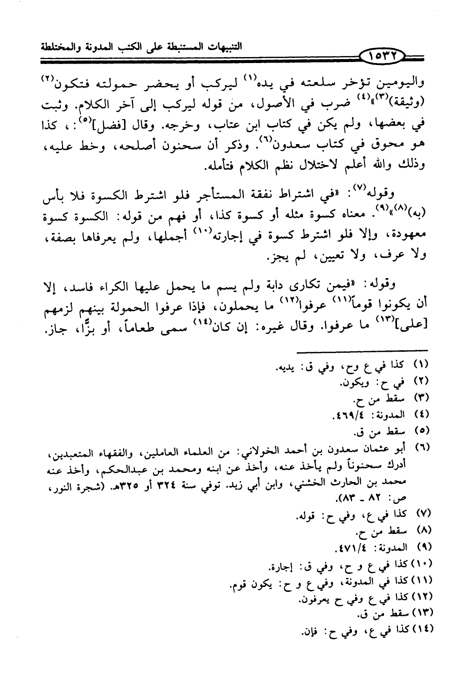 (¬6) أبو عثمان سعدون بن أحمد الخولاني: من العلماء العاملين، والفقهاء المتعبدين، أدرك سحنوناً ولم يأخذ عنه، وأخذ عن ابنه ومحمد بن عبد الحكم، وأخذ عنه محمد بن الحارث الخشني، وابن أبي زيد. توفي سنة 324 أو 325 هـ. (شجرة النور، ص: 82 - 83).