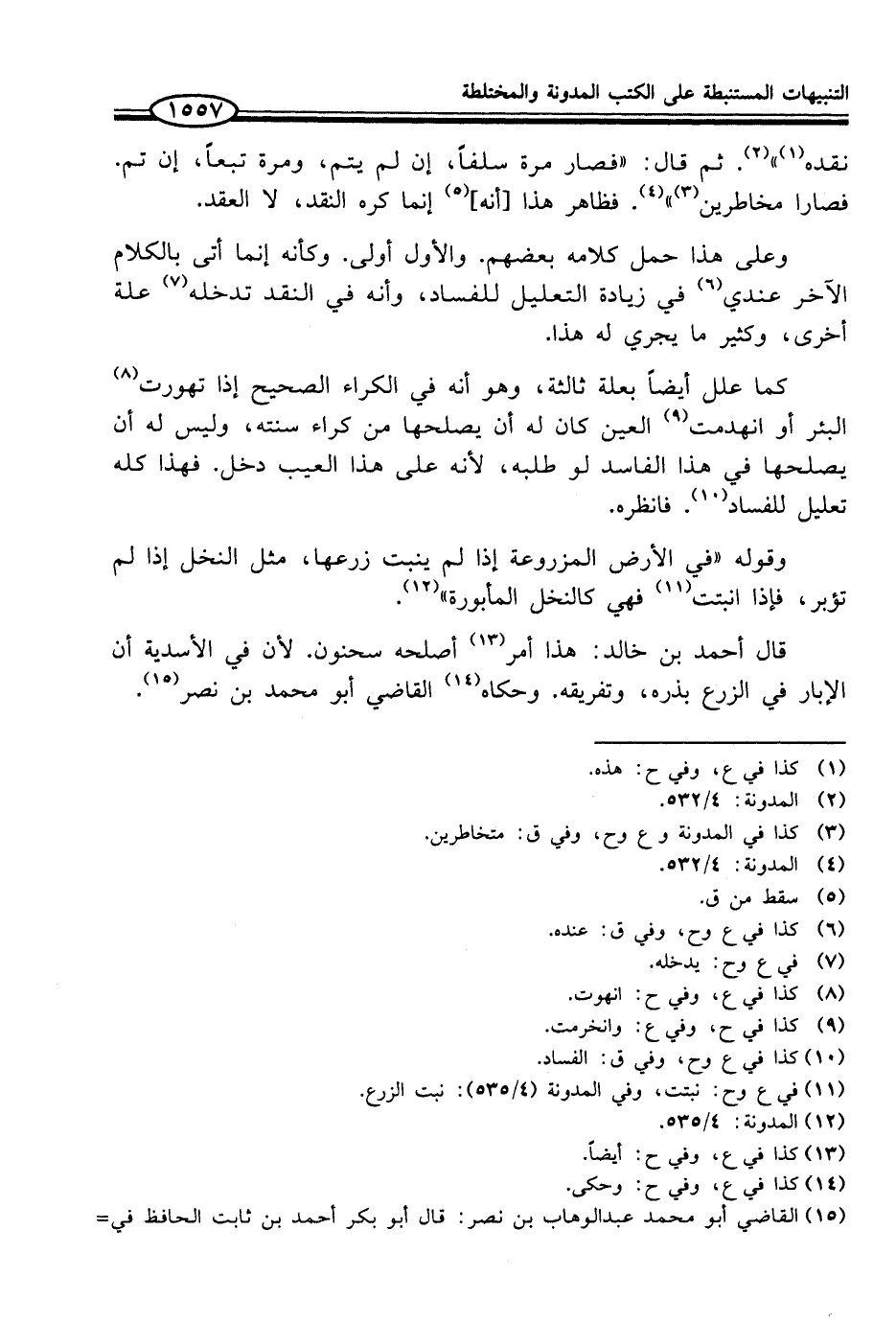 وعلى هذا حمل كلامه بعضهم. والأول أولى. وكأنه إنما أتى بالكلام الآخر عندي (¬6) في زيادة التعليل للفساد، وأنه في النقد تدخله (¬7) علة أخرى، وكثير ما يجري له هذا.