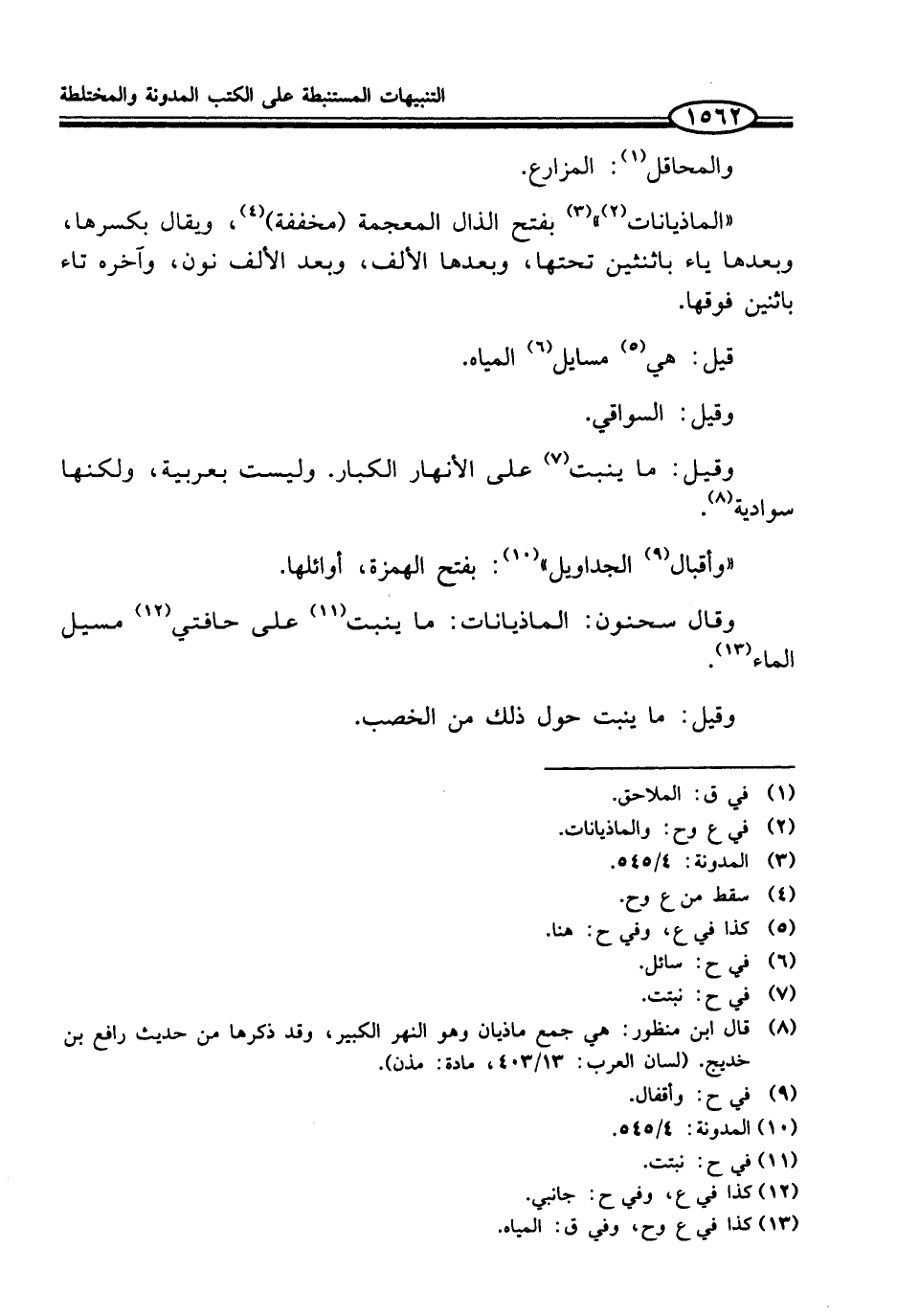 (¬8) قال ابن منظور: هي جمع ماذيان وهو النهر الكبير، وقد ذكرها من حديث رافع بن خديج. (لسان العرب: 13/ 403، مادة: مذن).