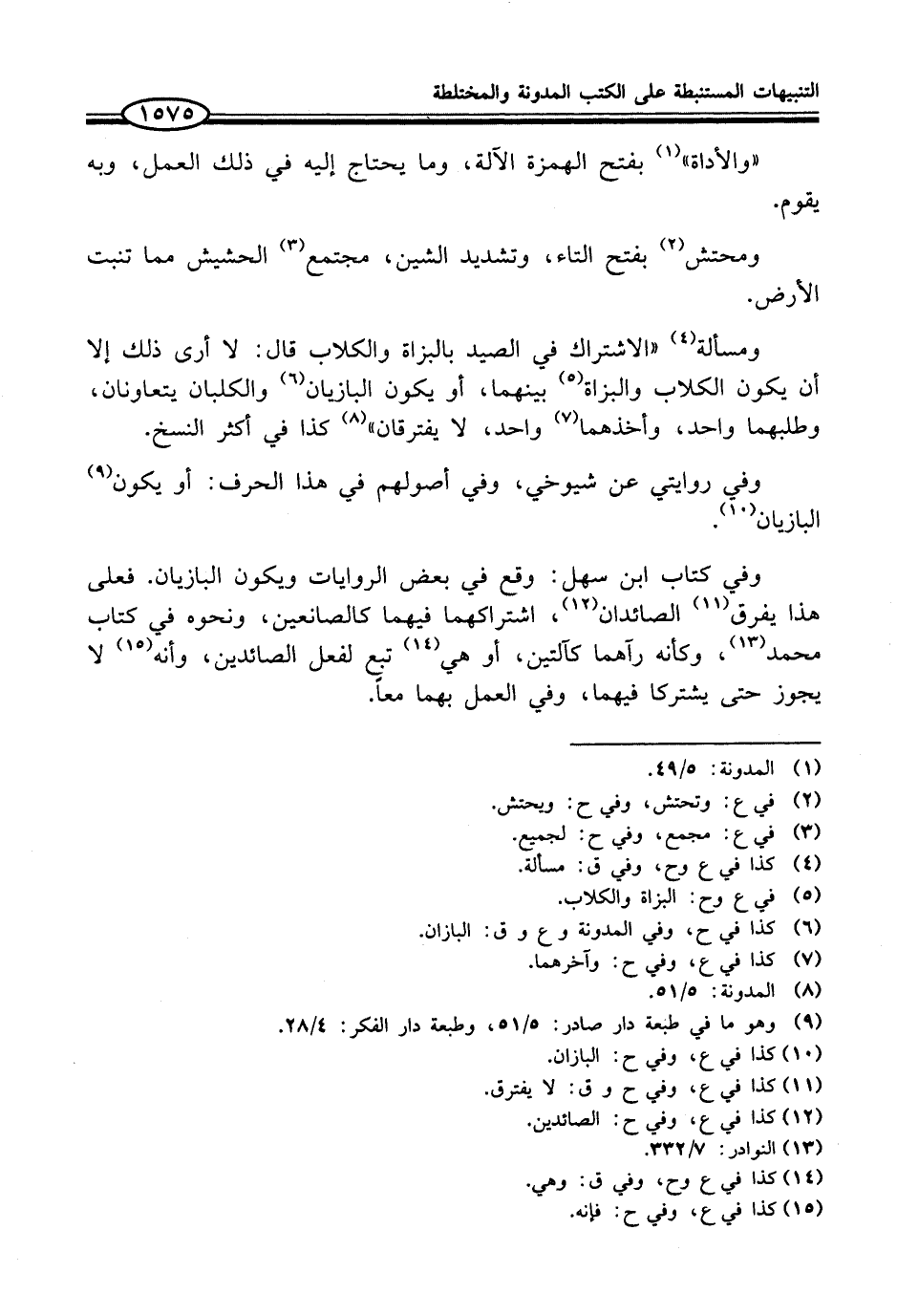 ومسألة (¬4) "الاشتراك في الصيد بالبزاة والكلاب قال: لا أرى ذلك إلا أن يكون الكلاب والبزاة (¬5) بينهما، أو يكون البازيان (¬6) والكلبان يتعاونان، وطلبهما واحد، وأخذهما (¬7) واحد، لا يفترقان" (¬8) كذا في أكثر النسخ.